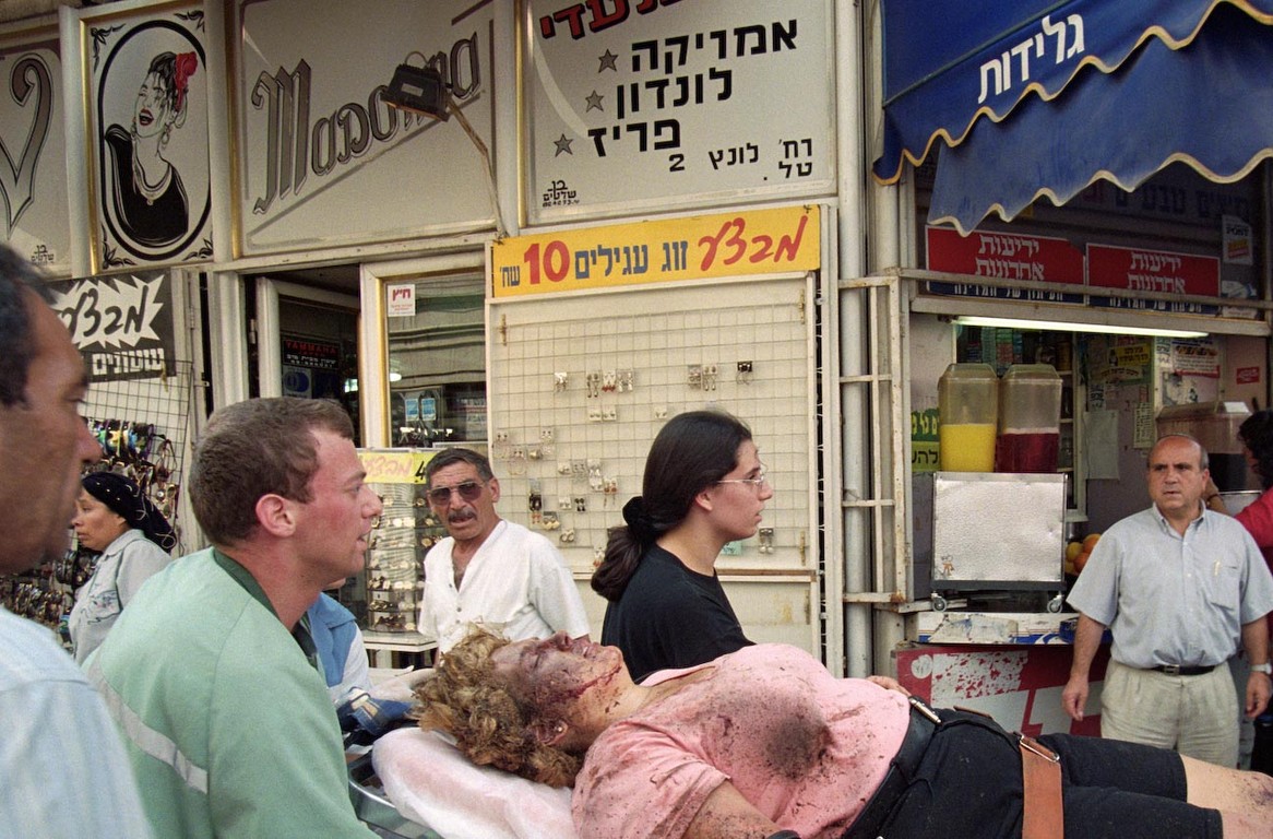 that all the other photographers had left early, a Palestinian gunman dressed in an Israeli army uniform had opened fire in a bus station, and an airplane carrying mostly Israelis was accidentally