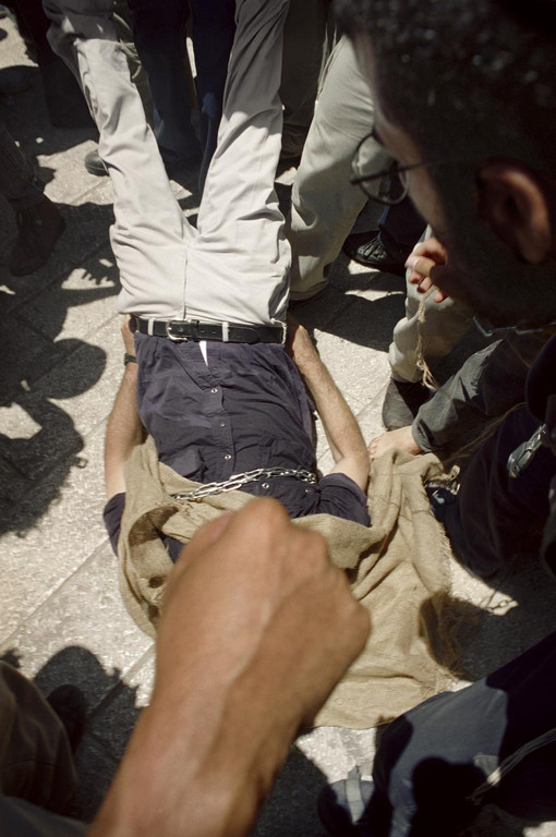 Dome of the Rock Mosque, while a model of an airplane flew into a styrofoam skyscraper. There I heard that one of the militia leaders I had photographed, who had become the "most wanted" man in the