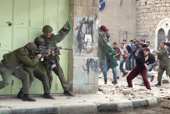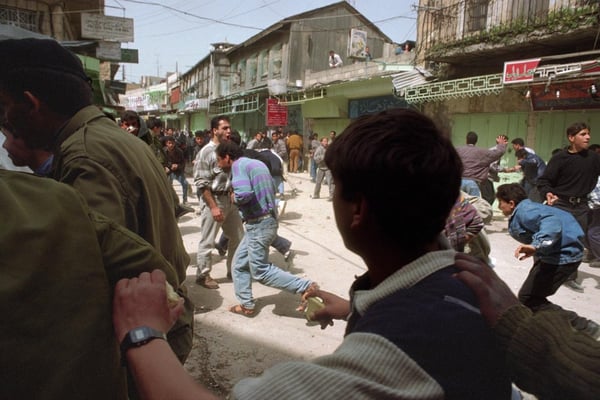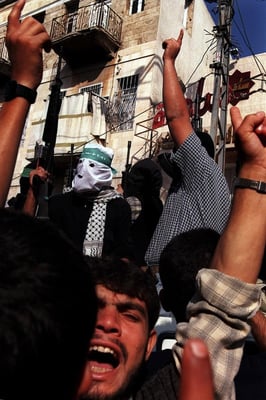 I went to the West Bank town of Nablus in an armored Jeep to photograph the celebration of the anniversary of the intifada. The Palestinian areas, made up of the West Bank and the